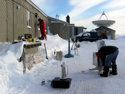 Unter gemeinsamer Federführung des Alfred-Wegener-Instituts für Polar- und Meeresforschung und des italienischen Instituts für Atmosphärenforschung Bologna treffen sich neun der 19 teilnehmenden Nationen des Polar-AOD-Netzwerkes (Aerosol Optical Depth in Polar Regions) in Ny-Ålesund auf Spitzbergen. Sonnenphotometer sind eine spezielle Variante von Strahlungsmessgeräten, welche die Intensität der Sonne in verschiedenen Farbbereichen messen können. Durch Vergleich der am Boden gemessenen Lichtintensität mit der außerhalb der Atmosphäre kann man ermitteln, wie viel Licht durch Streuung und Absorption in den Luftschichten herausgefiltert wird. Die Intensitätsänderung geht einher mit der Veränderung der Farbe des Sonnenlichtes. Die Farbveränderung erlaubt gleichzeitig Aufschluss über den Charakter feiner Schwebeteilchen, der Aerosole, die in der Atmosphäre für die Lichtabschwächung sorgen.